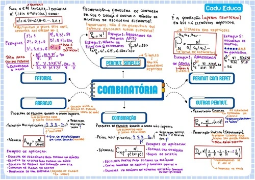 O Mapa Mental de Análise Combinatória do Cadu Educa funciona como uma bússola: ele guia o seu raciocínio para a fórmula correta.